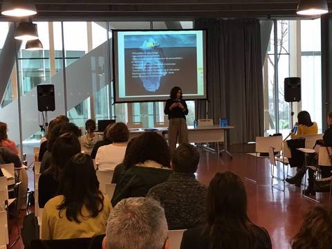 Lo que inicialmente nació tomando unas cañas en Barajas en el último fin de semana del curso de Experto, con el objetivo de seguir viéndonos y aprendiendo en un encuentro informal, se convirtió en una Jornada abierta a familias de ATELGA y profesionales, hasta completar aforo. Padres, profesionales de Atención Temprana, Maestras de Audición y Lenguaje, de Pedagogía Terapéutica, tutoras y alguna profesional de la Orientación dejaron patente el interés por el TEL y la necesidad de seguir dando visibilidad al Trastorno en las distintas comunidades.